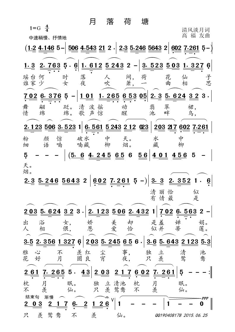 荷塘月色 (1P 790x1119 词曲:汪维赣 汪维赣)