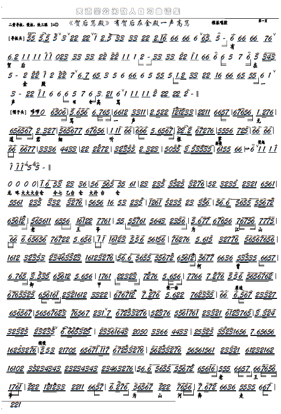 > 贺后骂殿 有贺后在金殿一声高骂 京剧选段 京胡谱