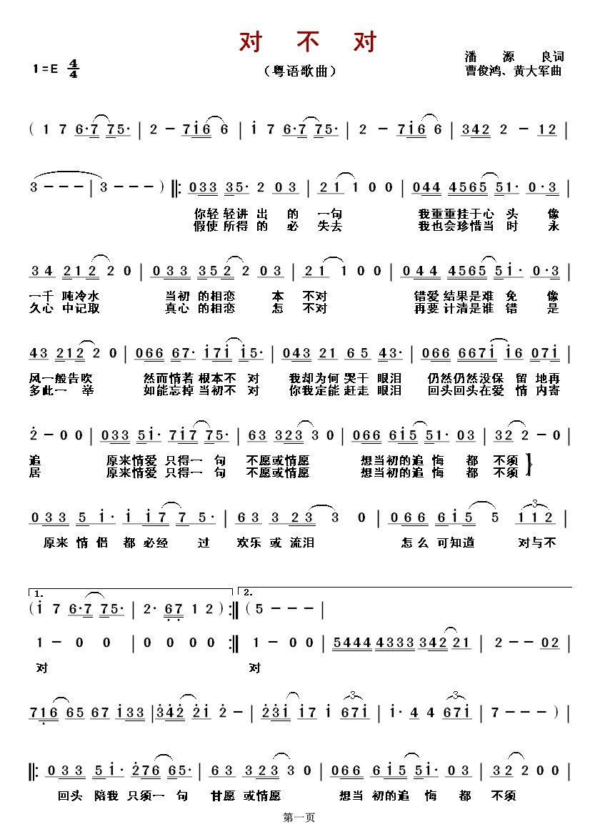 - [歌谱] 烟雨凄迷 粤语歌曲
