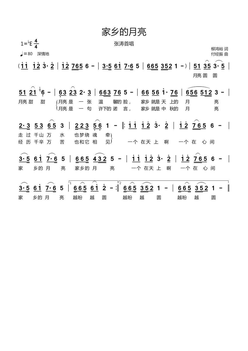 - [歌谱] 家乡的月亮 阿洛可斯夫基词