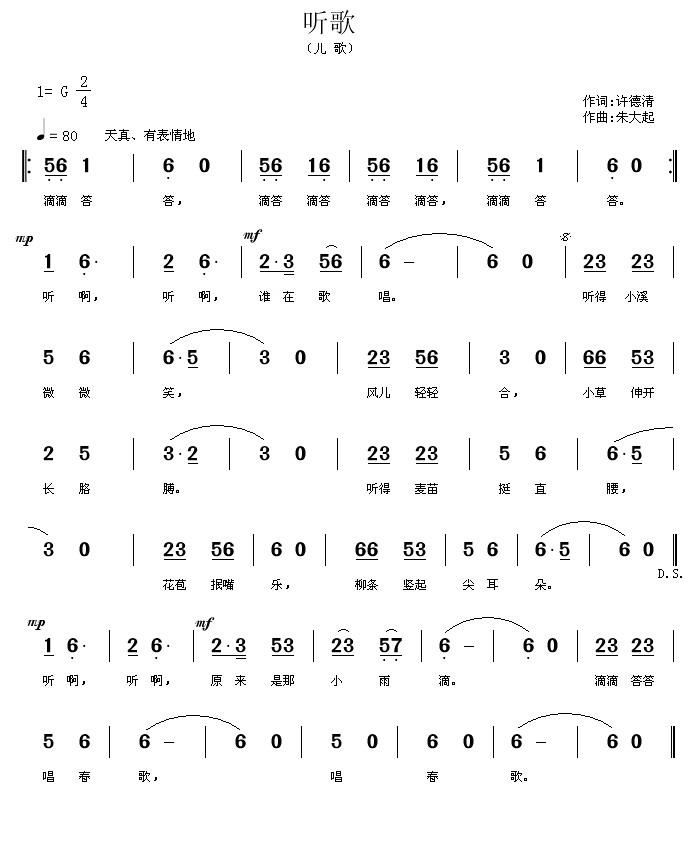 - [歌谱] 爸爸妈妈听我说 儿歌