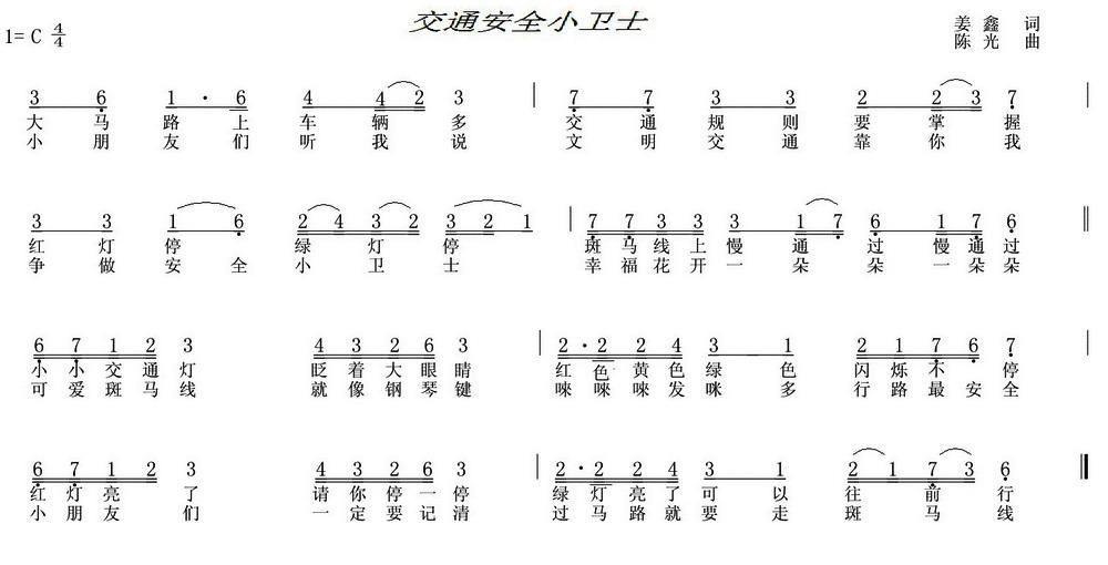 - [歌谱] 交通安全伴我行 少儿歌曲