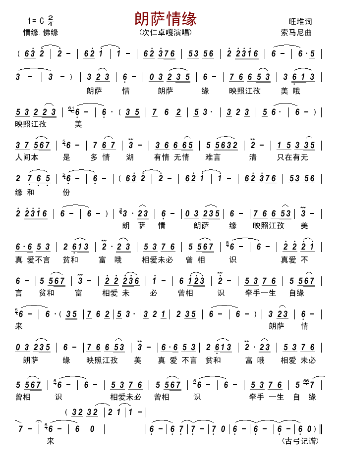 - [歌谱] 做你的新娘 索哈?次仁卓嘎