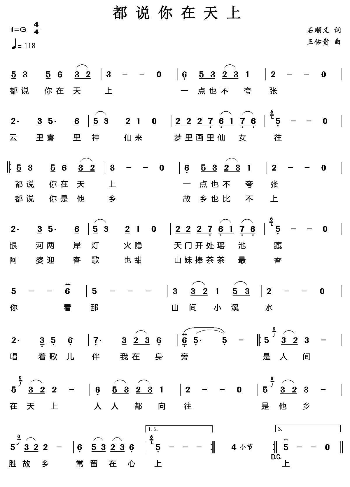- [歌谱] 都说天下你最美