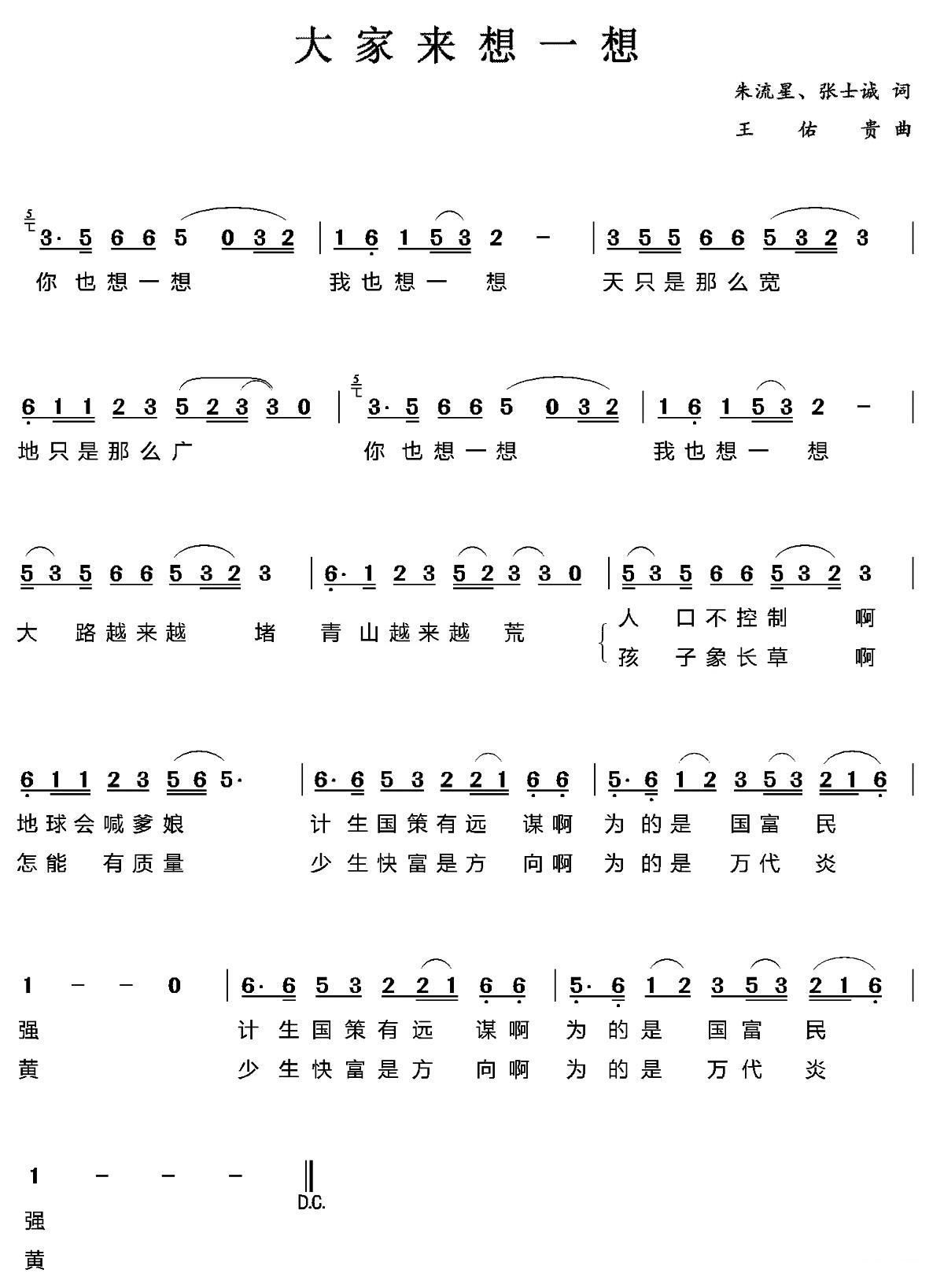 - [歌谱] 大家都来想一想