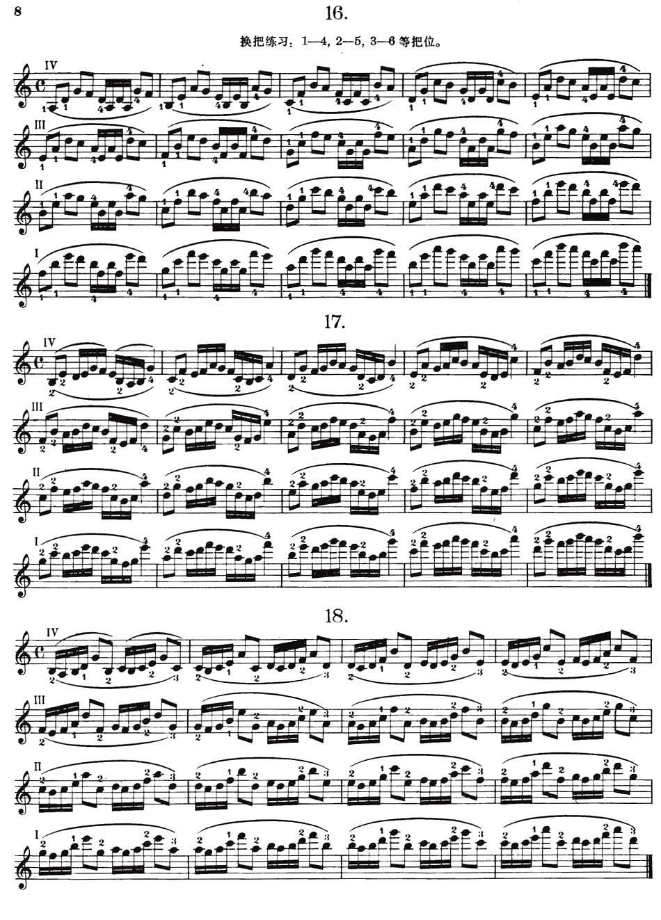 > 小提琴换把练习 作品第八号 第三节