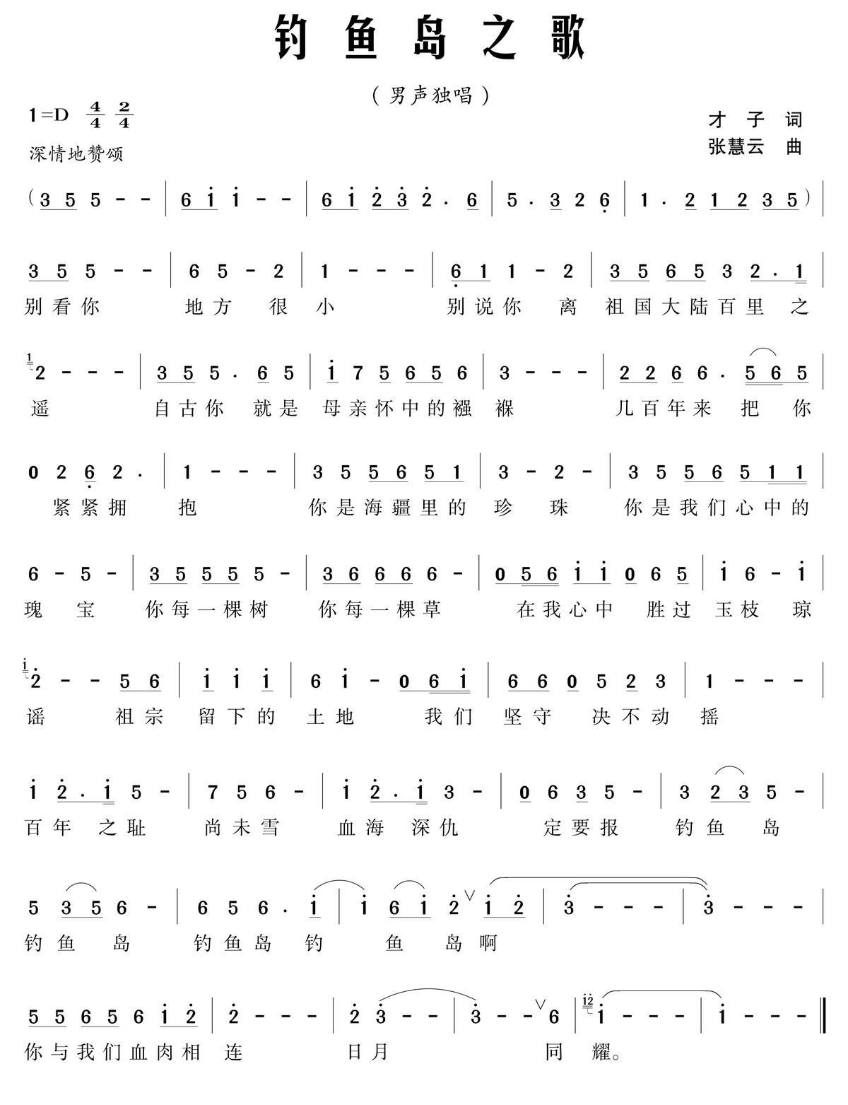 - [歌谱] 钓鱼岛之歌