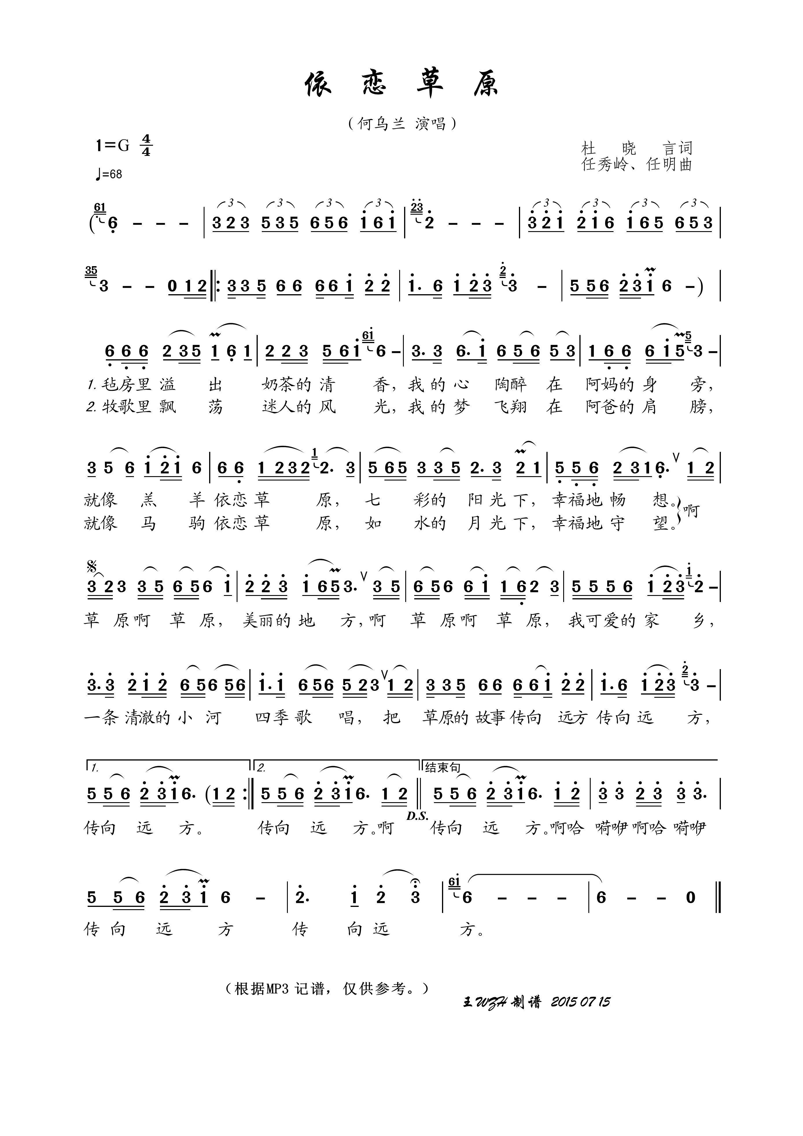 - [笛子谱,歌谱] 依恋草原 何乌兰版