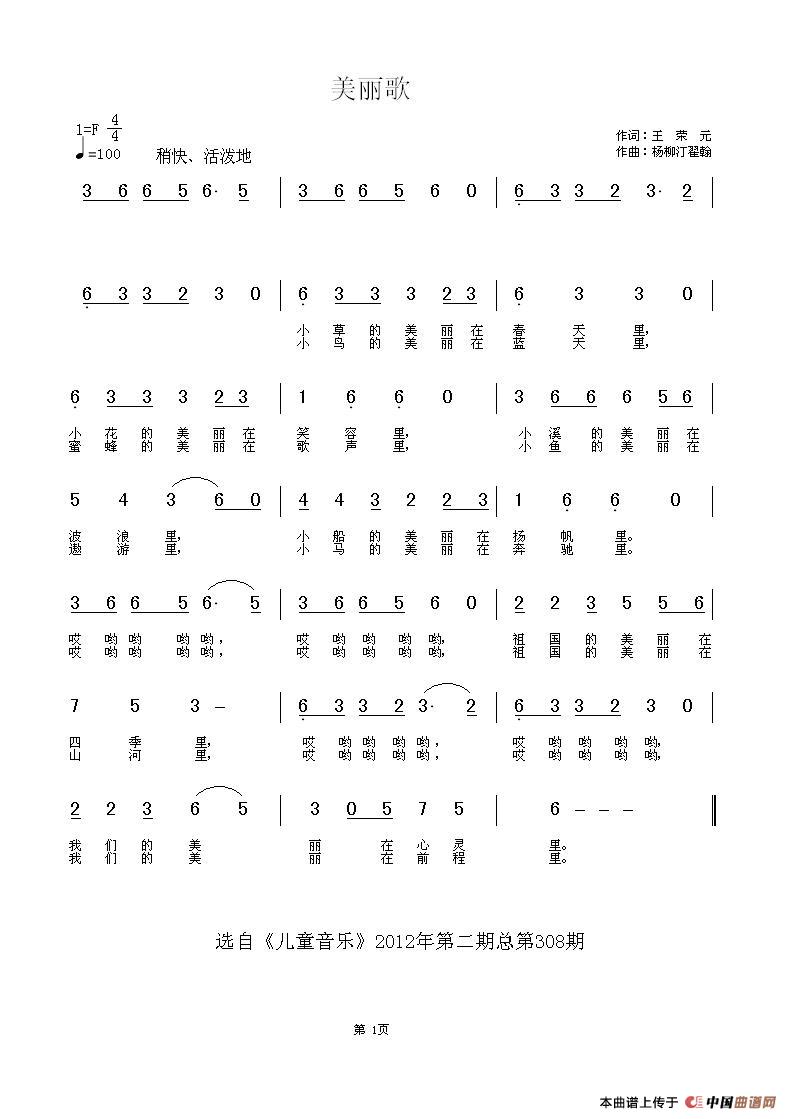 - [歌谱] 美丽歌