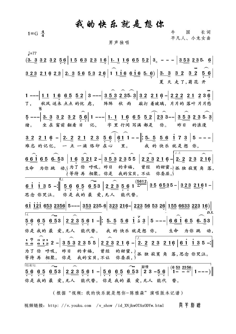 我的快乐就是想你 平凡人