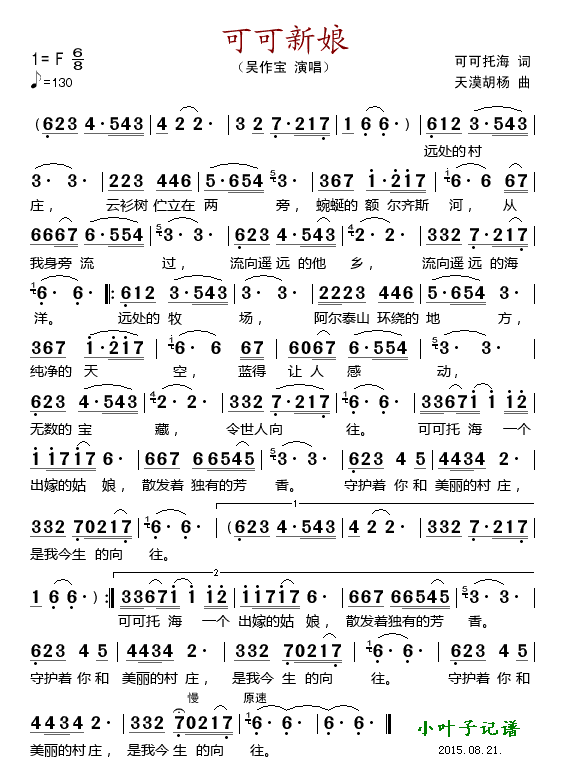 - [歌谱] 可可豆豆香