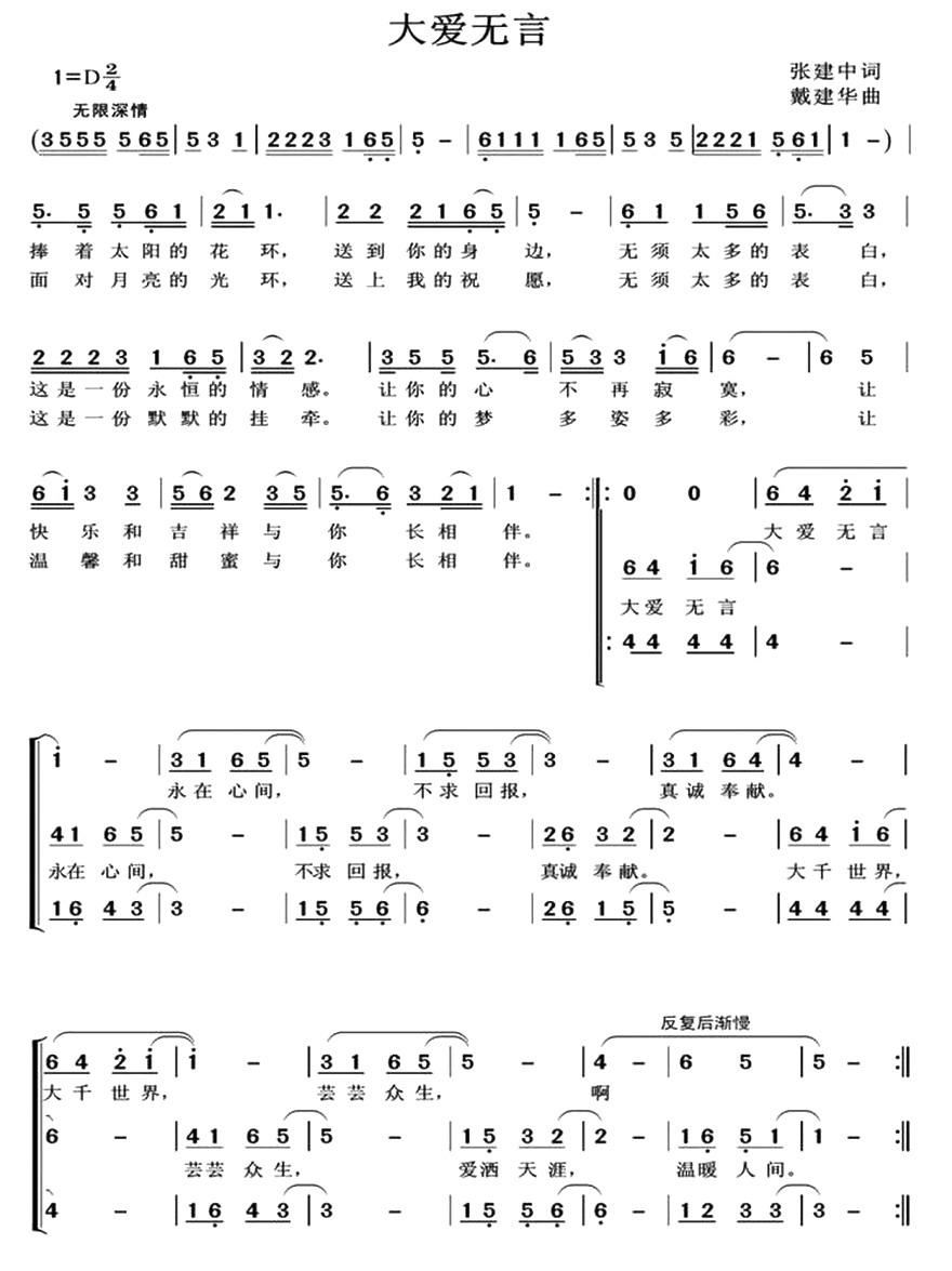 - [歌谱] 大爱无言 抗震救灾歌曲
