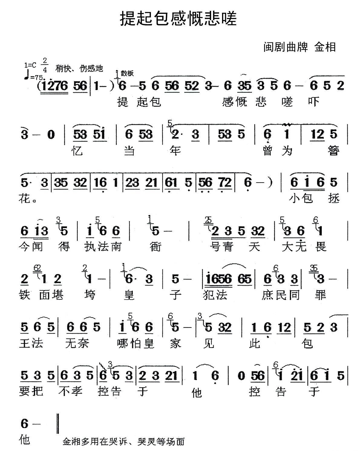 > 闽剧 提起包感慨悲嗟 曲牌 金相