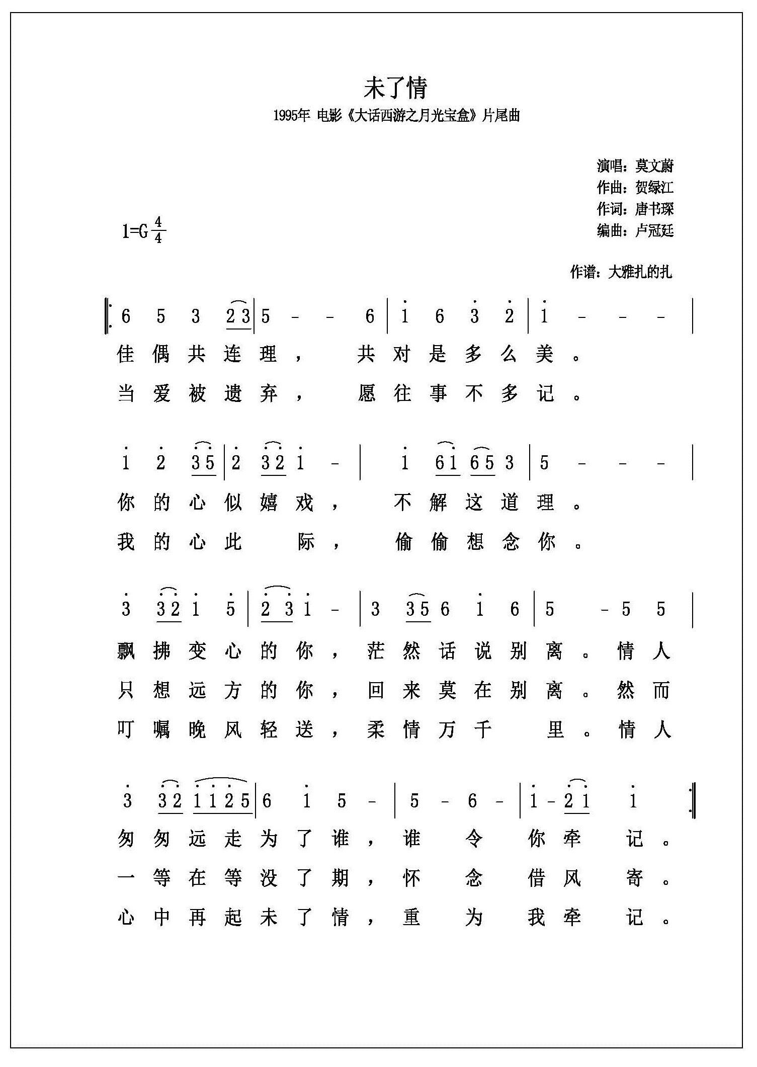 未了情 1995年 电影 大话西游之月光宝盒 片尾曲