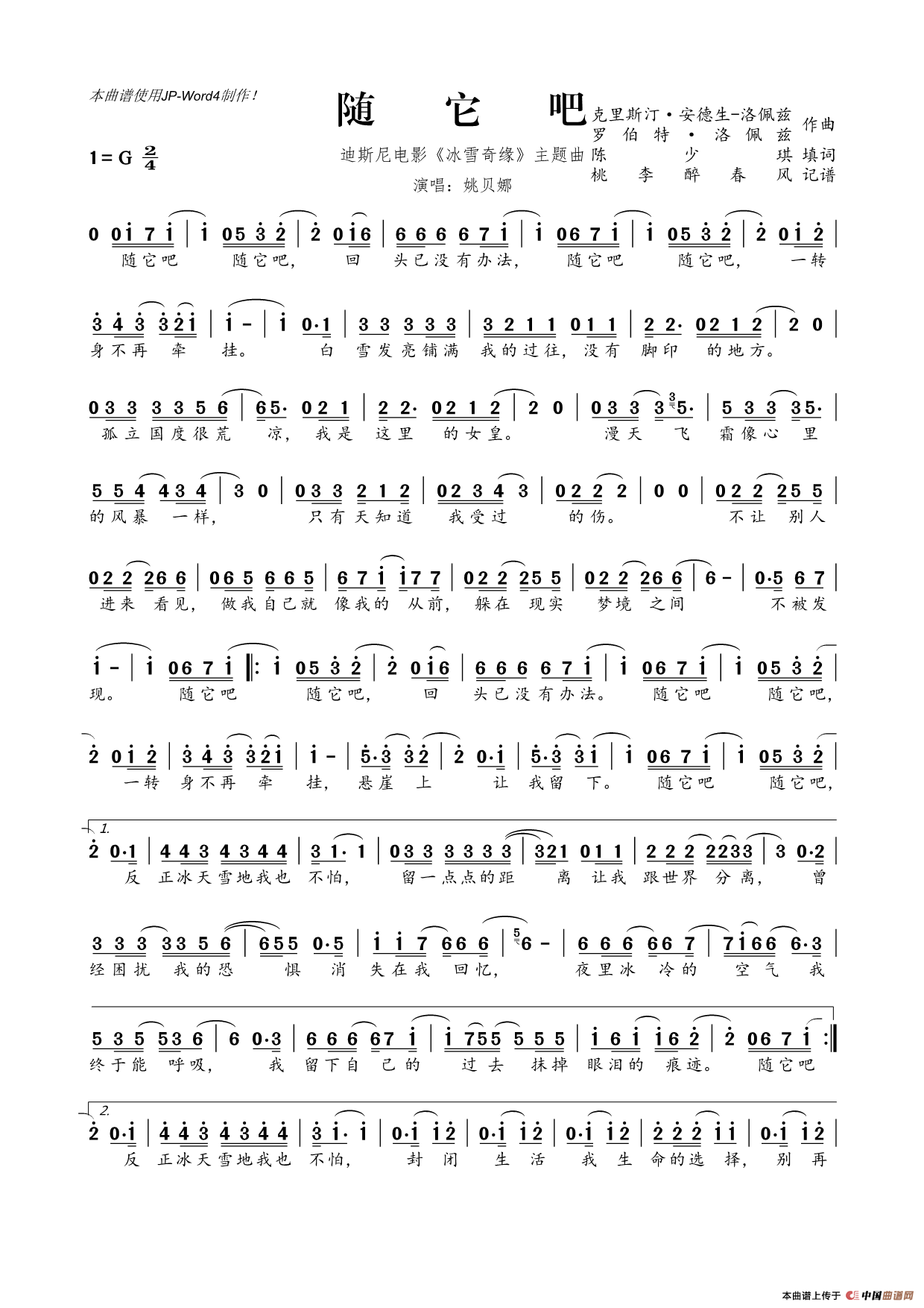 let it go 随它吧 姚贝娜 原版bG调 冰雪奇缘主题曲 动画原版