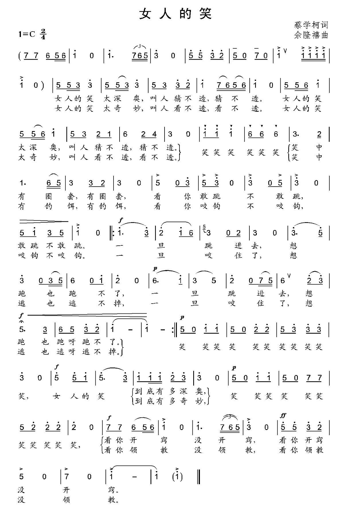 - [歌谱] 女人的歌