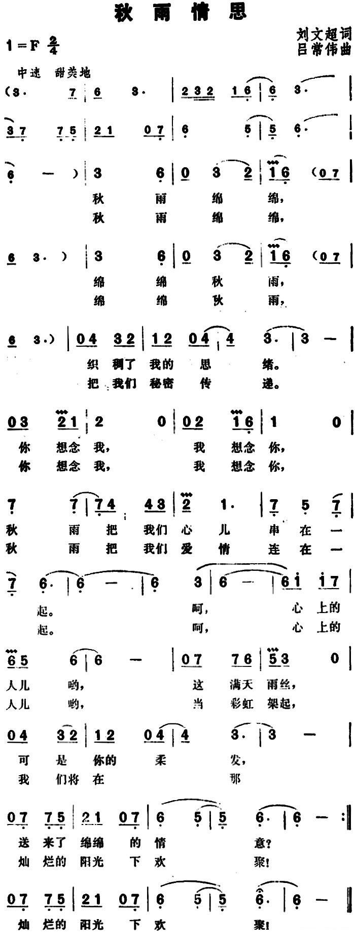 - [歌谱] 秋雨思情