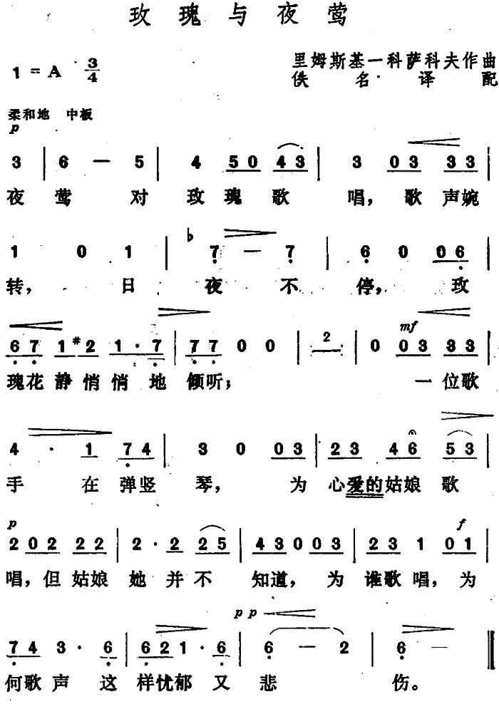 夜莺与玫瑰 俄 里姆斯基 科萨科夫曲