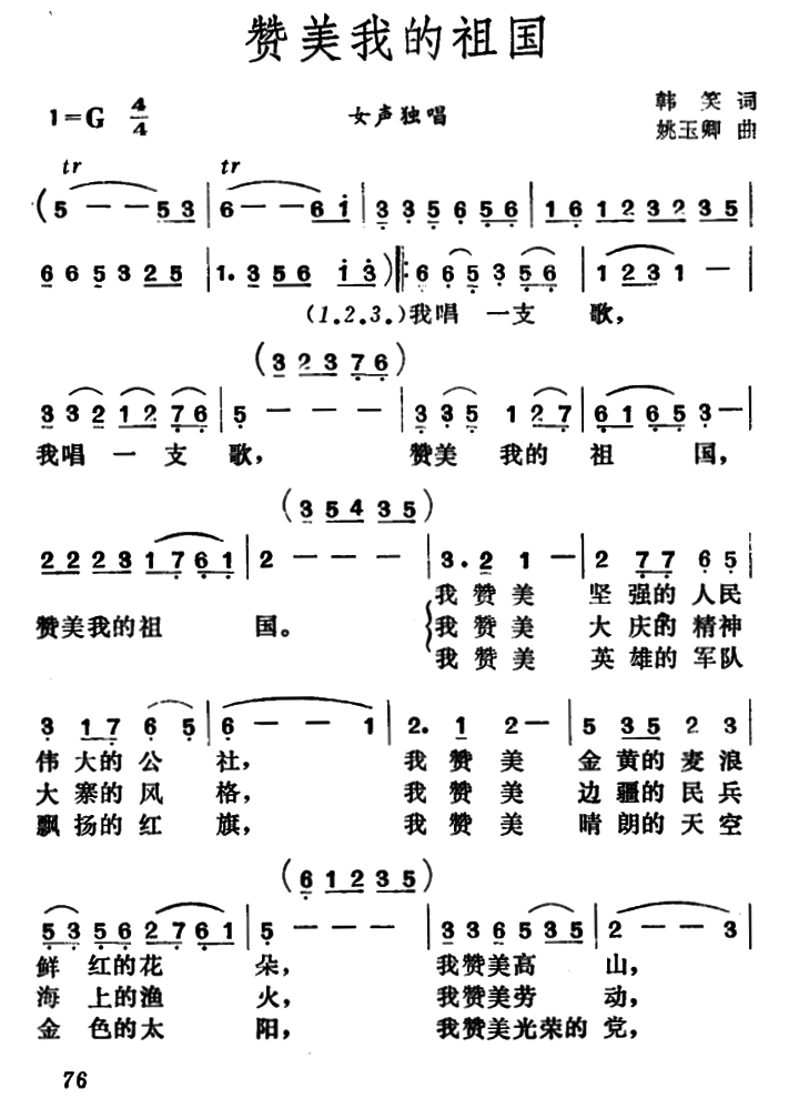 - [歌谱] 赞美我们的祖国