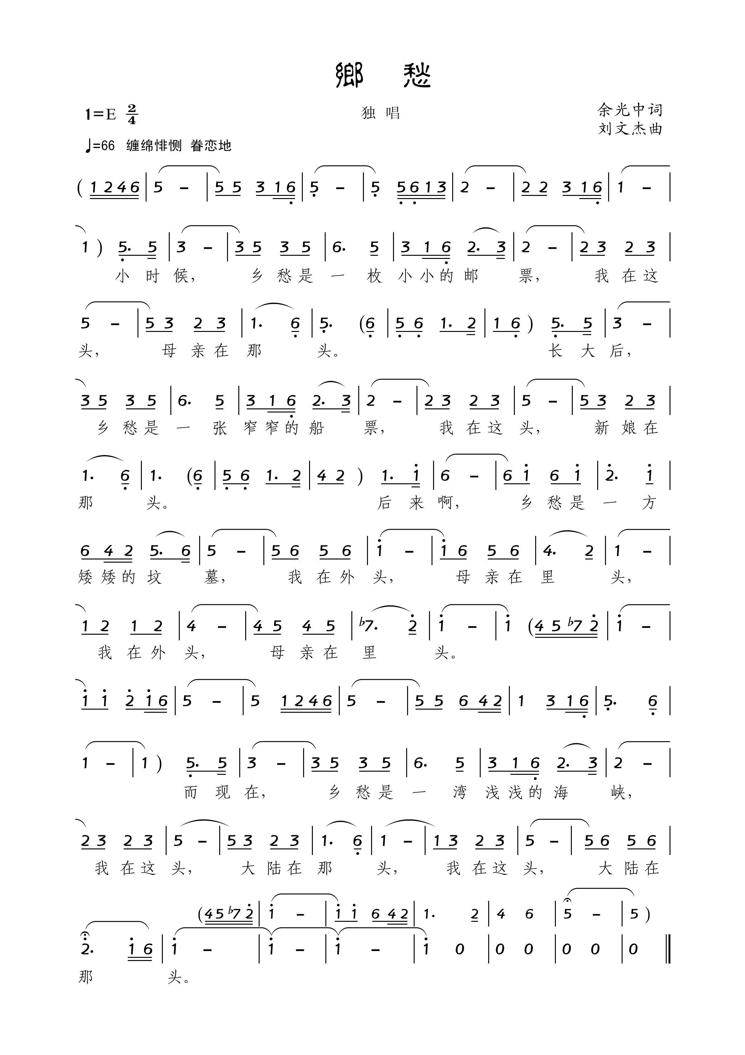 - [歌谱] 乡愁