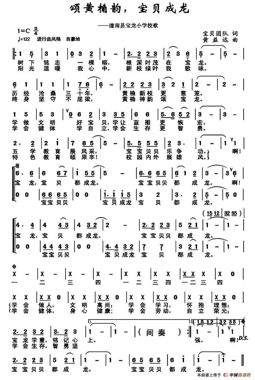 - [歌谱] 颂黄桷韵 宝贝成龙 潼南县宝龙小学校歌