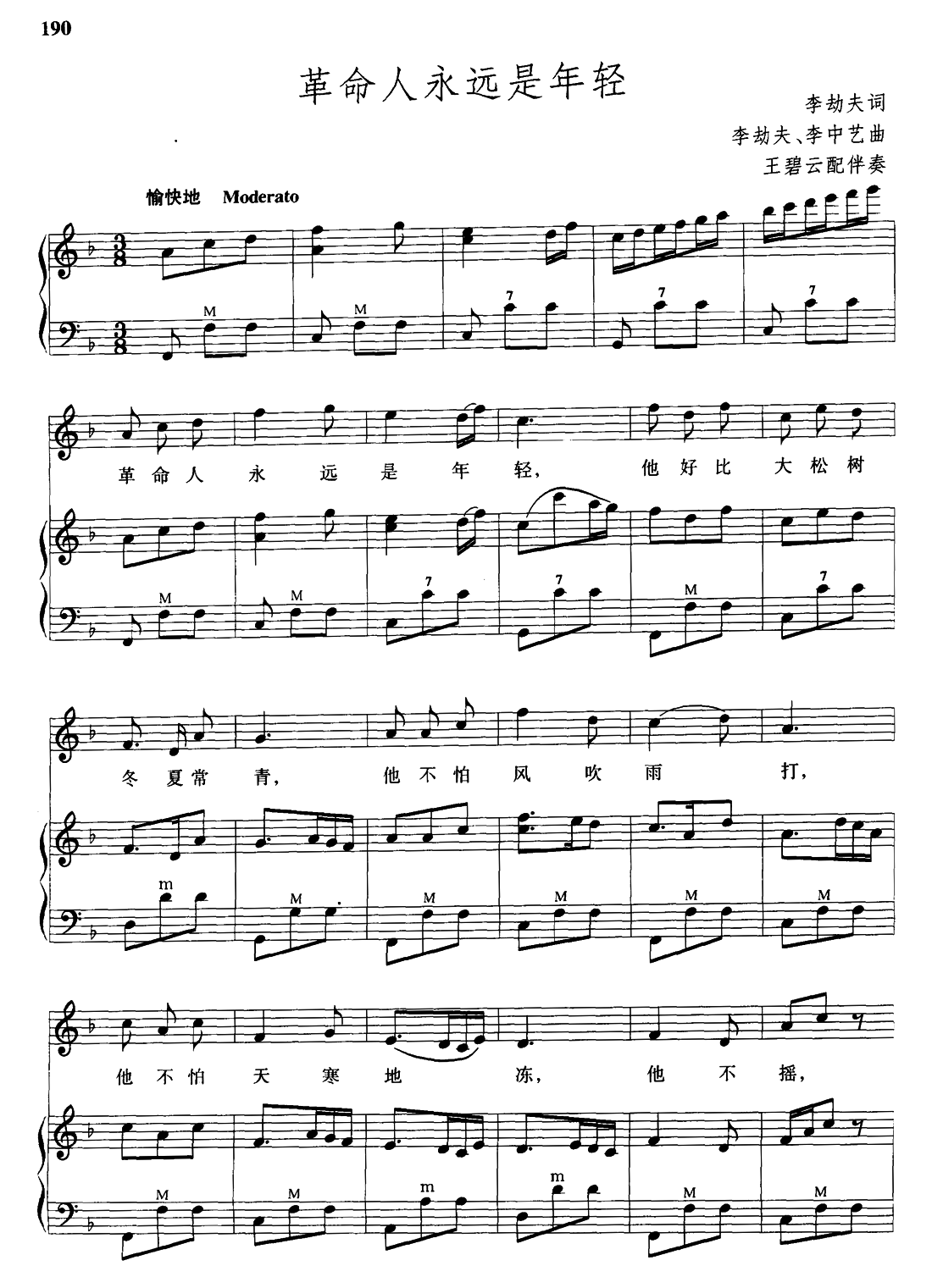 > 革命人永远是年轻 二声部 手风琴伴奏谱