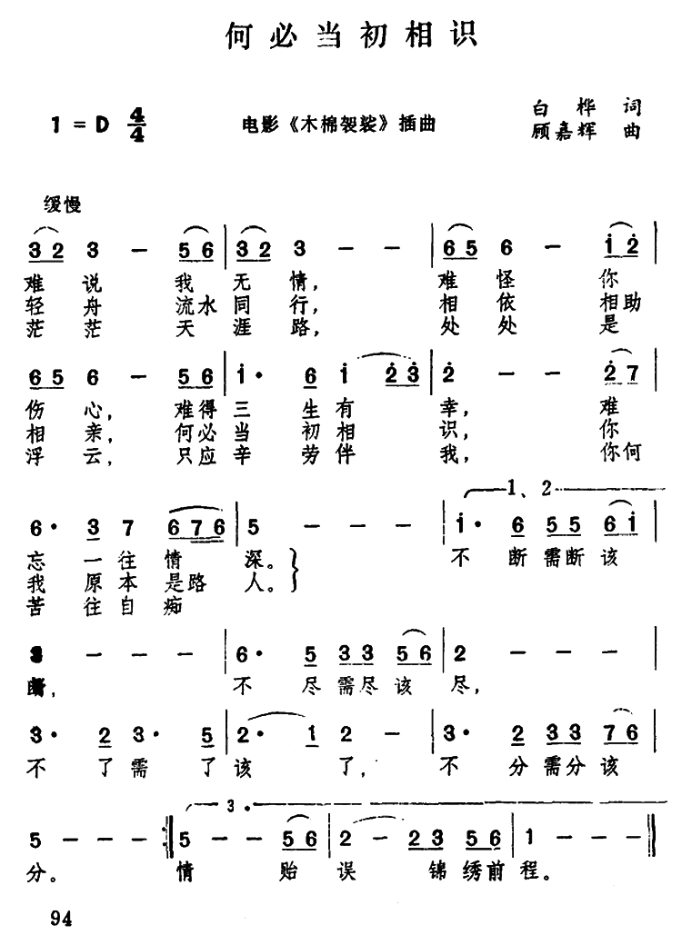 但愿人生常聚少离分 电影 巴山夜雨 插曲