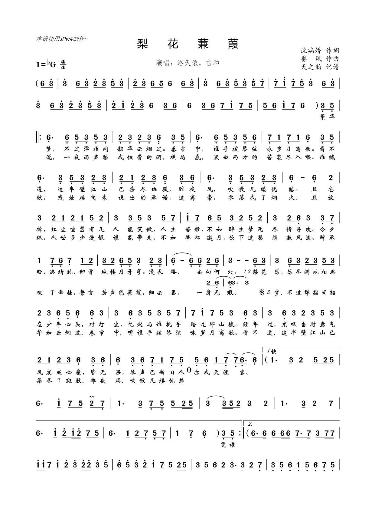 - [歌谱] 梨花雨