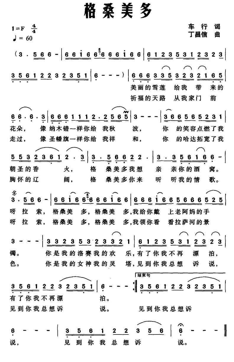 - [歌谱] 请到阎村来
