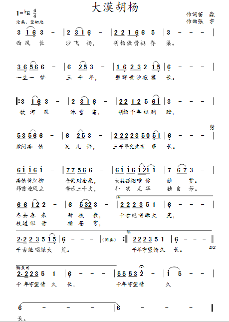 - [歌谱] 大漠胡杨