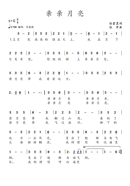 - [歌谱] 亲亲太阳 亲亲月亮