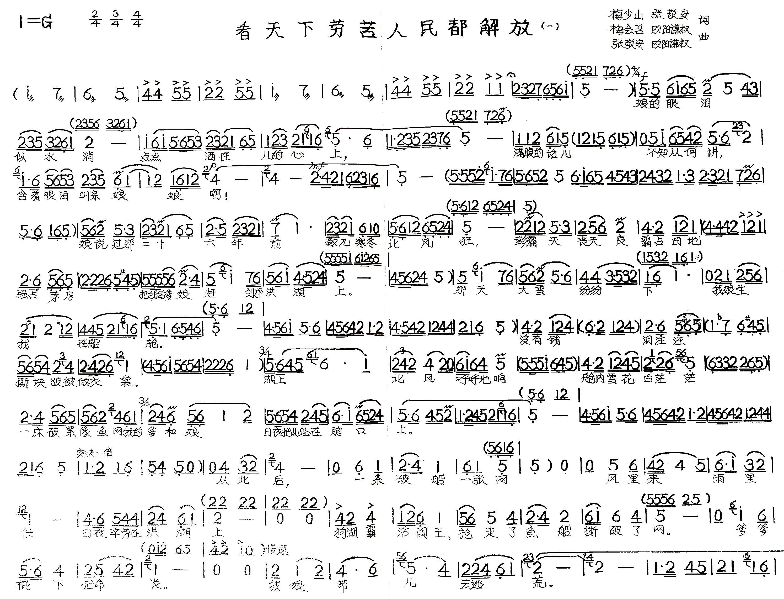 > 看天下劳苦人民都解放