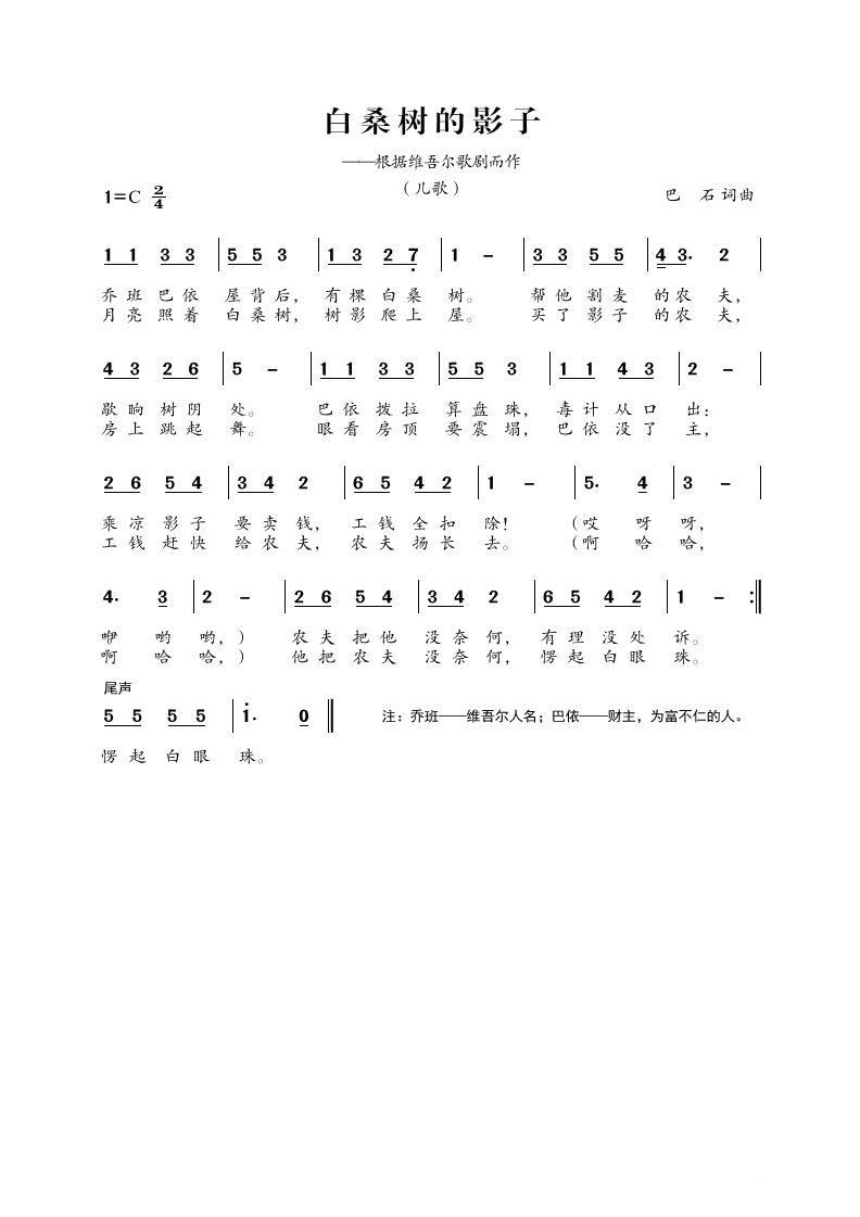 > 白桑树的影子 儿歌
