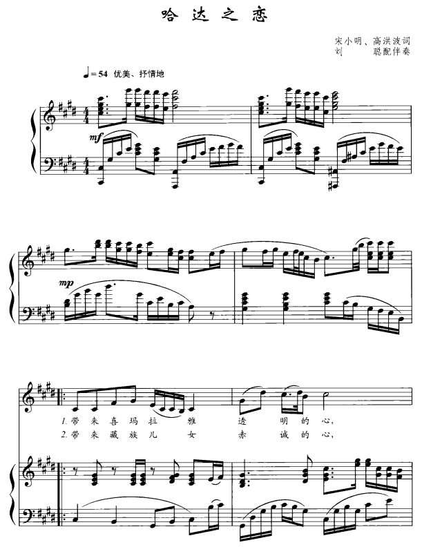 - [钢琴谱,歌谱] 哈达