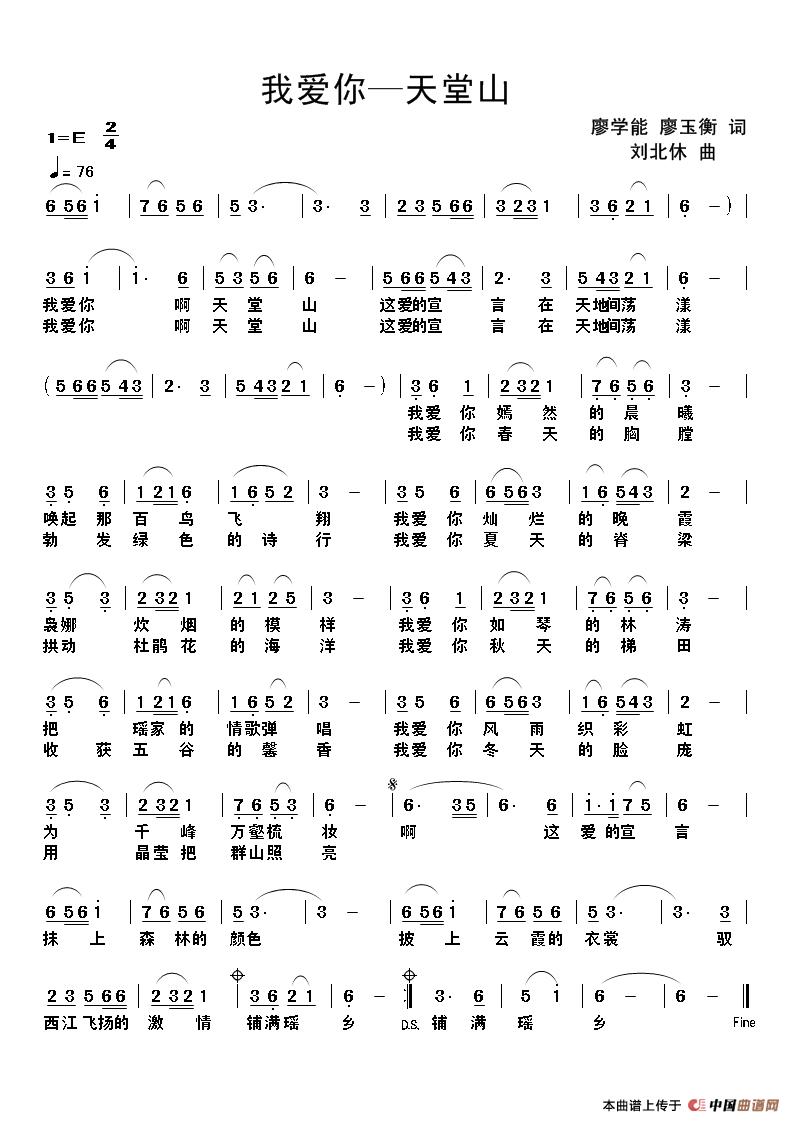 - [歌谱] 我爱你 明月山的雪