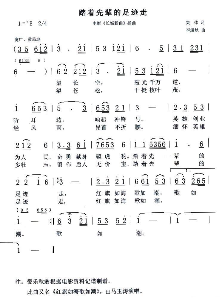 > 踏着先辈的足迹走 电影 长城新曲 插曲