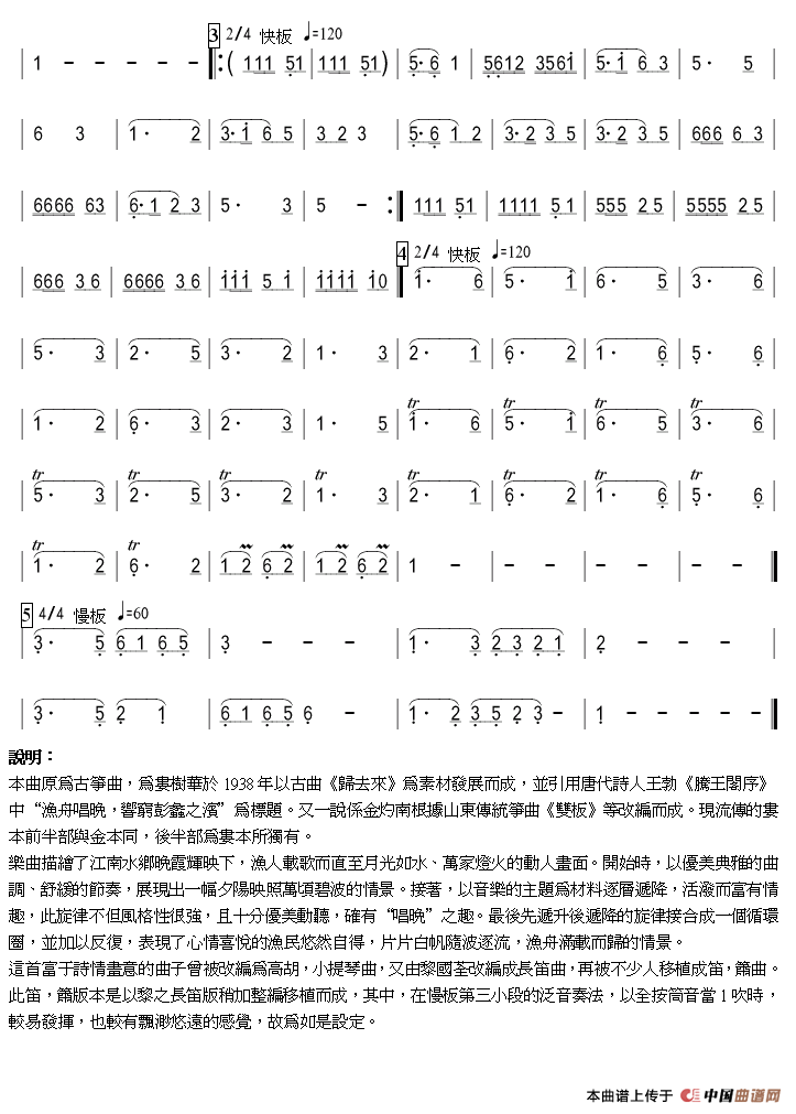 - [笛子谱,箫谱] 渔舟唱晚 箫