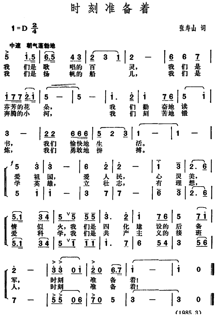 - [歌谱] 红领巾时刻准备着 少儿歌曲