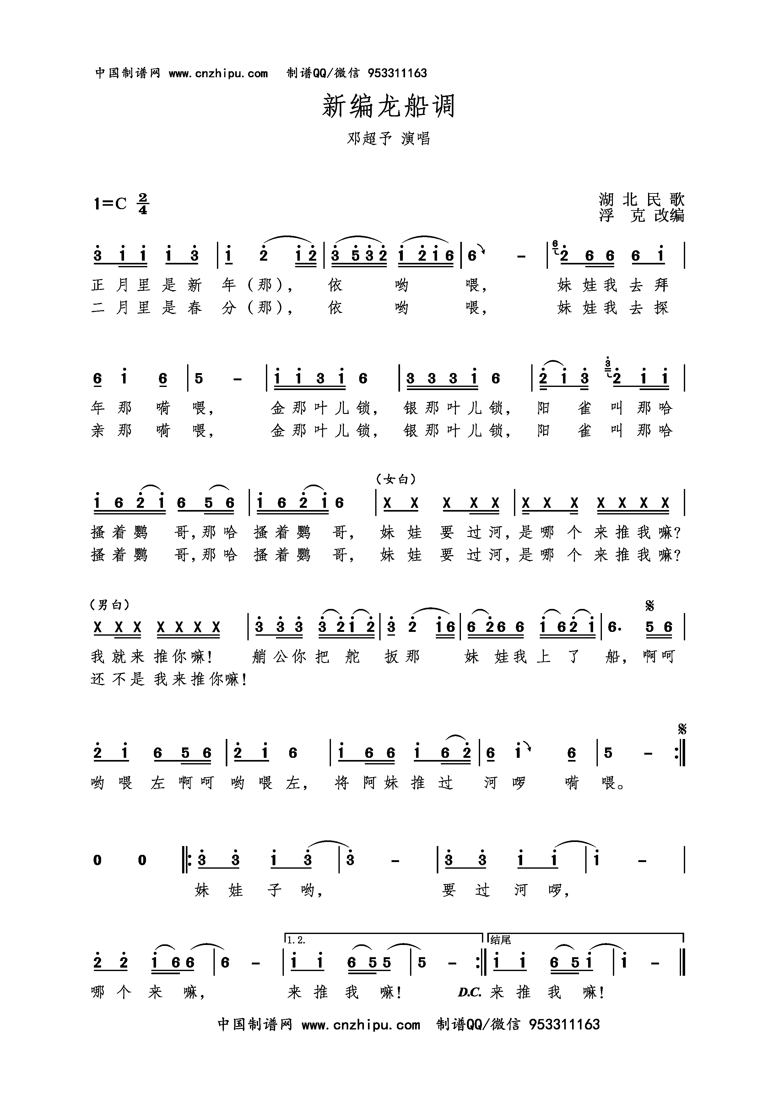 - [歌谱] 新龙船调