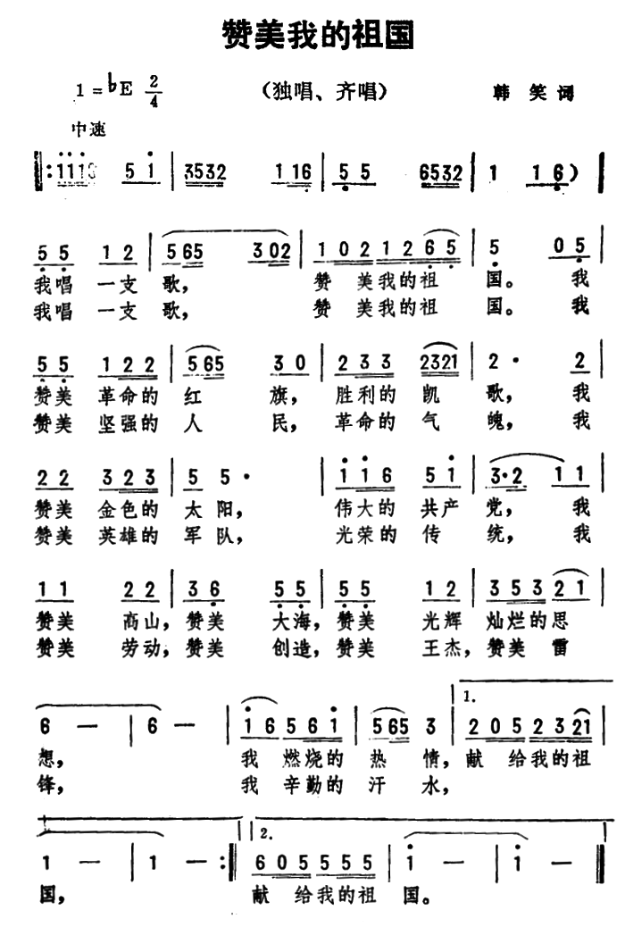 赞美伟大的祖国 扫描谱