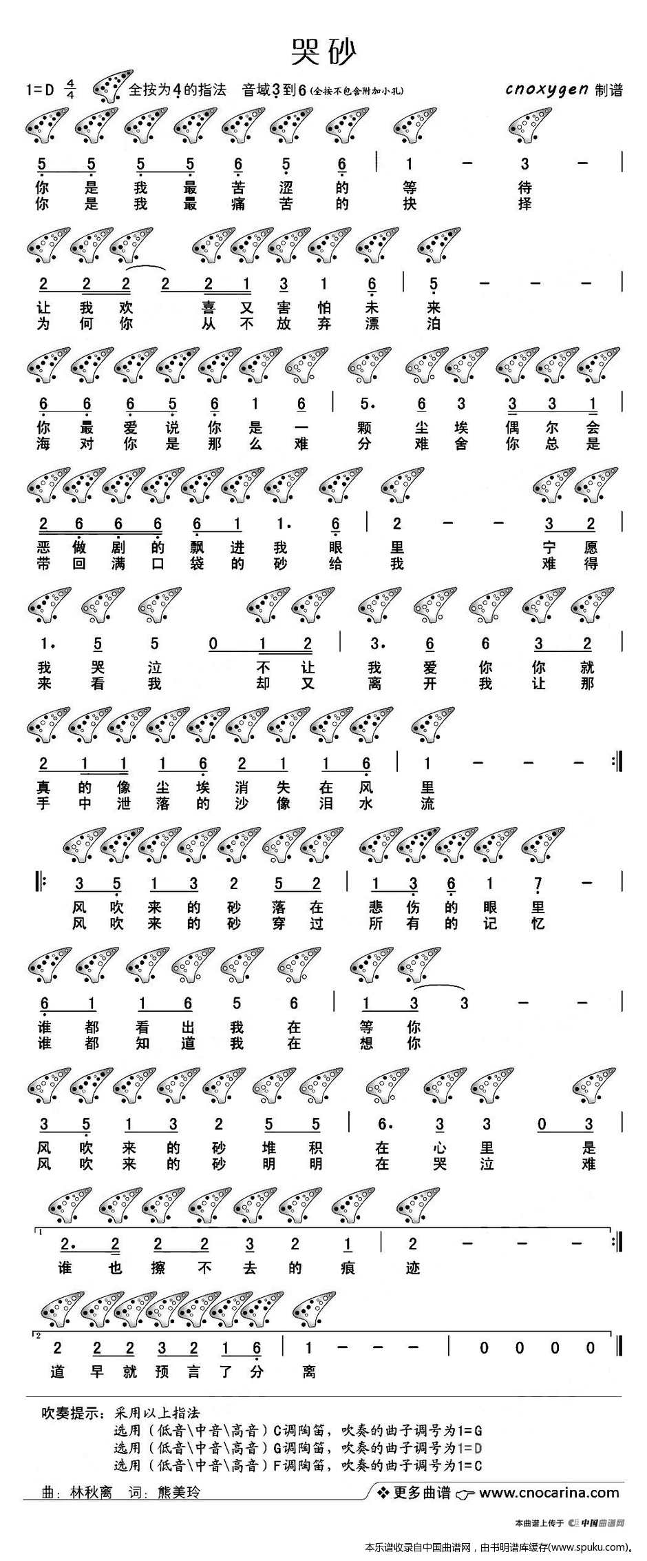 - [笛子谱,陶笛谱] 哭砂 十二孔