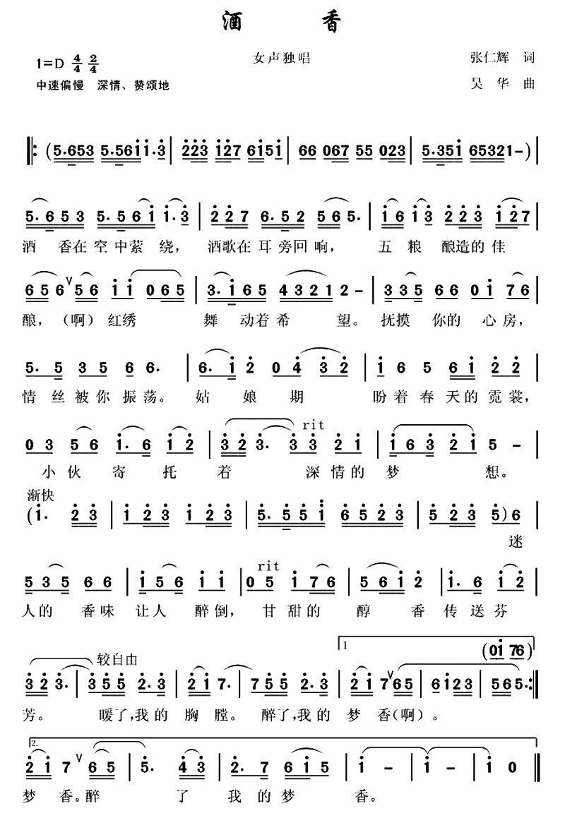 - [歌谱] 酒香情浓 泽旺多吉 秋叶版