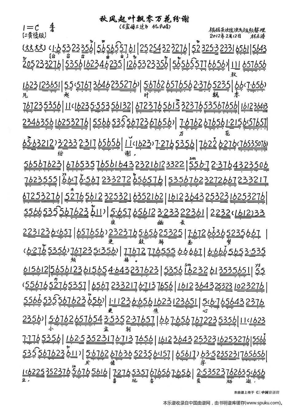 > 秋风起叶飘零万花纷谢 孟母三迁 选段 琴谱 京剧戏谱