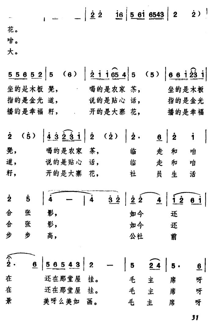 当年毛主席走过这山路 红松店 选段 京剧唱谱