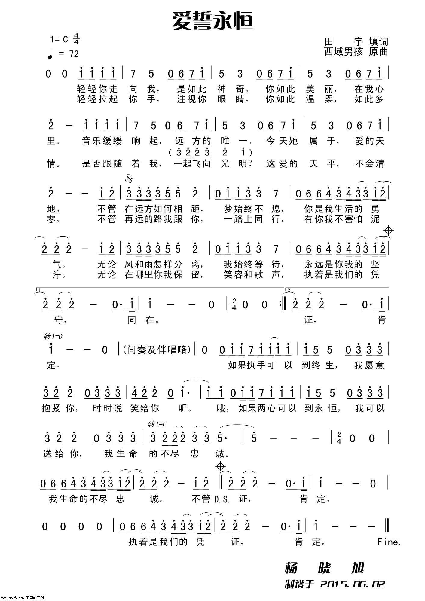 - [歌谱] 永恒的爱情