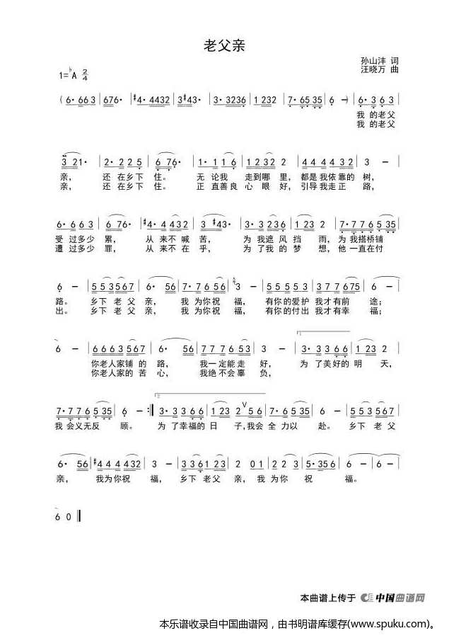 - [歌谱] 咱老父亲 又名 祝寿歌