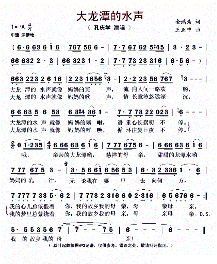 - [歌谱] 妈妈大海