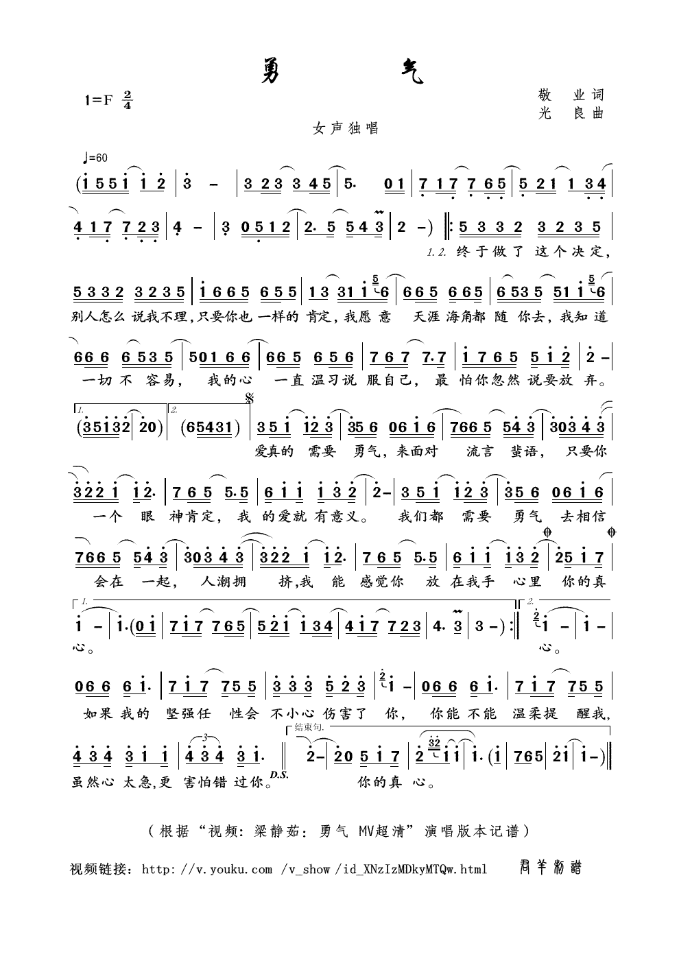 - [笛子谱,歌谱,箫谱] 勇气 梁静茹