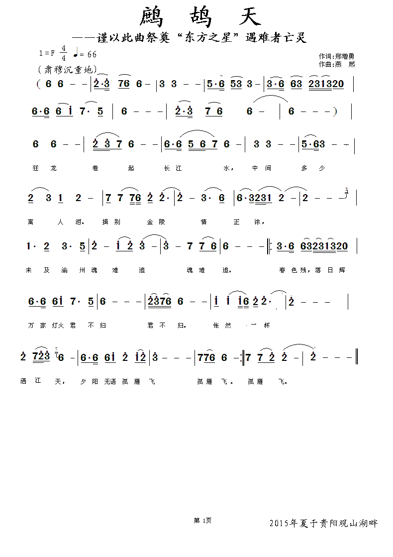 鹧鸪天 谨以此曲祭奠 东方之星 遇难者亡灵