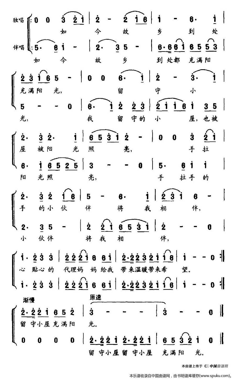 > 留守小屋里充满阳光 独唱